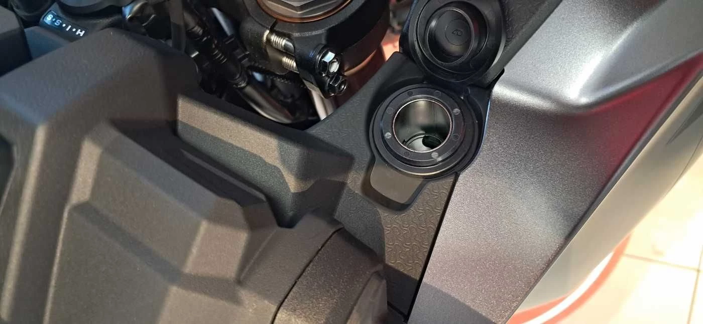 Wir haben 7 % zusätzliches Drehmoment aus dem flüssigkeitsgekühlten OHC-Zweizylindermotor herausgeholt. Insbesondere die Leistung im unteren und mittleren Drehzahlbereich wurde deutlich gesteigert. Das merkt man schon bei der ersten Betätigung des Gasgriffs. Das höhere Verdichtungsverhältnis von 10,5:1, die neuen Ventileinstellungen und die überarbeitete Ansauganlage sorgen gemeinsam für die gewohnte Spitzenleistung von 75 kW (101hp), jedoch mit höherer Kraftentfaltung im mittleren Drehzahlbereich. Die Konstruktion der elektronisch gesteuerten Drosselklappe wurde aktualisiert und sorgt so für eine noch präzisere Steuerung. Auch der Auspuff ist neu, was sich durch höhere Leistung und einen satteren, knackigeren Sound beim Hochdrehen bemerkbar macht.